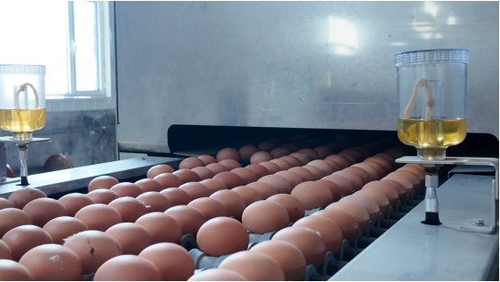记者看到,地方集蛋系统通过智能传送带,将新颖鸡蛋间接从鸡舍传送至隔邻的分拣车间,这里的“黑科技”更让记者大开眼界传送带上的鸡蛋起首颠末精密喷雾清洗,概况的饲料残渣和粪便被完全冲净,随后进入烘干设备快速干燥。紧接着,鸡蛋被从动翻转,大头朝上划一陈列,再颠末蓝光映照消毒,概况喷上食用油保鲜,最初通过智能检测设备。“这个设备能看到难以辨此外藐小裂纹。”孙涛引见道。